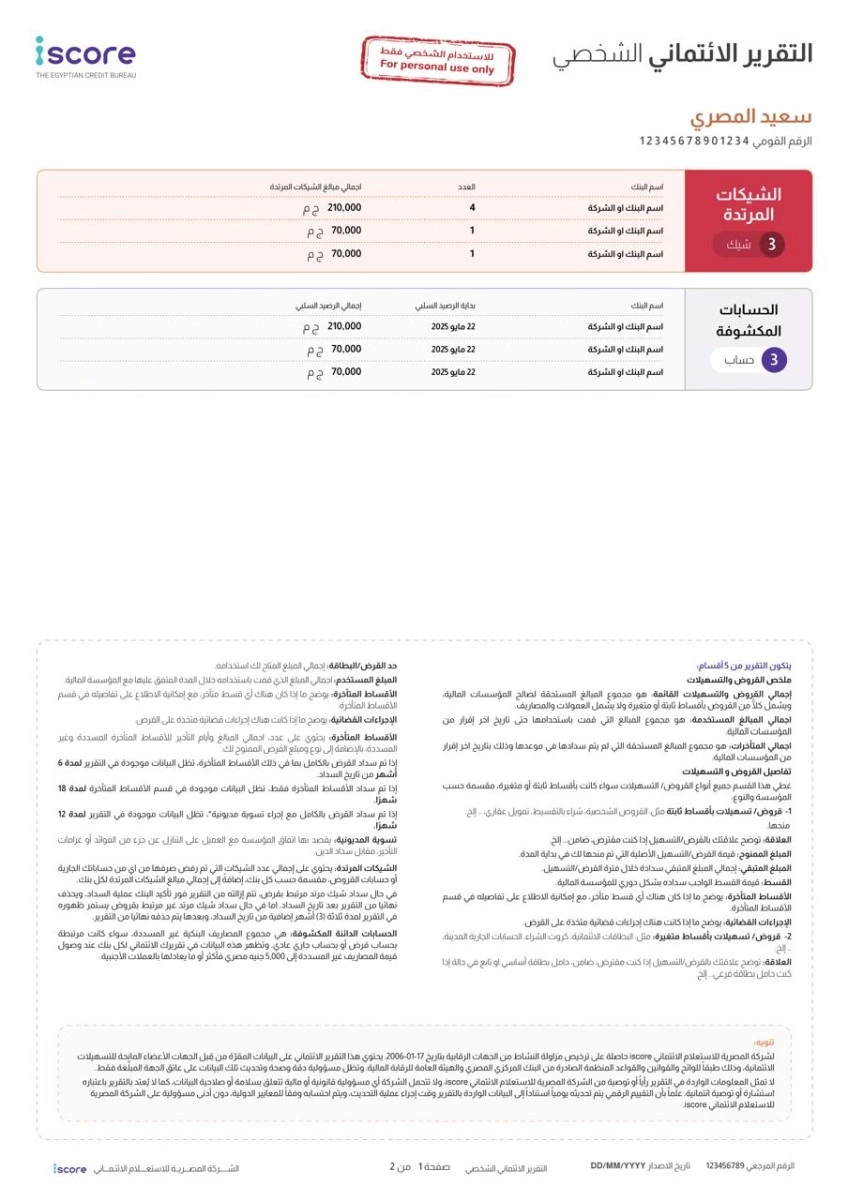 واختتمت الشركة بالتأكيد على أن إتاحة التقرير الائتماني عبر منصة مصر الرقمية يمثل إضافة قوية لمنظومة الخدمات الحكومية الرقمية التي تجاوزت 200 خدمة، وأن iscore ستواصل العمل على توسيع نطاق الحلول الرقمية وتطوير خدمات مبتكرة تلبّي احتياجات المواطنين وتدعم الشمول المالي في مصر.