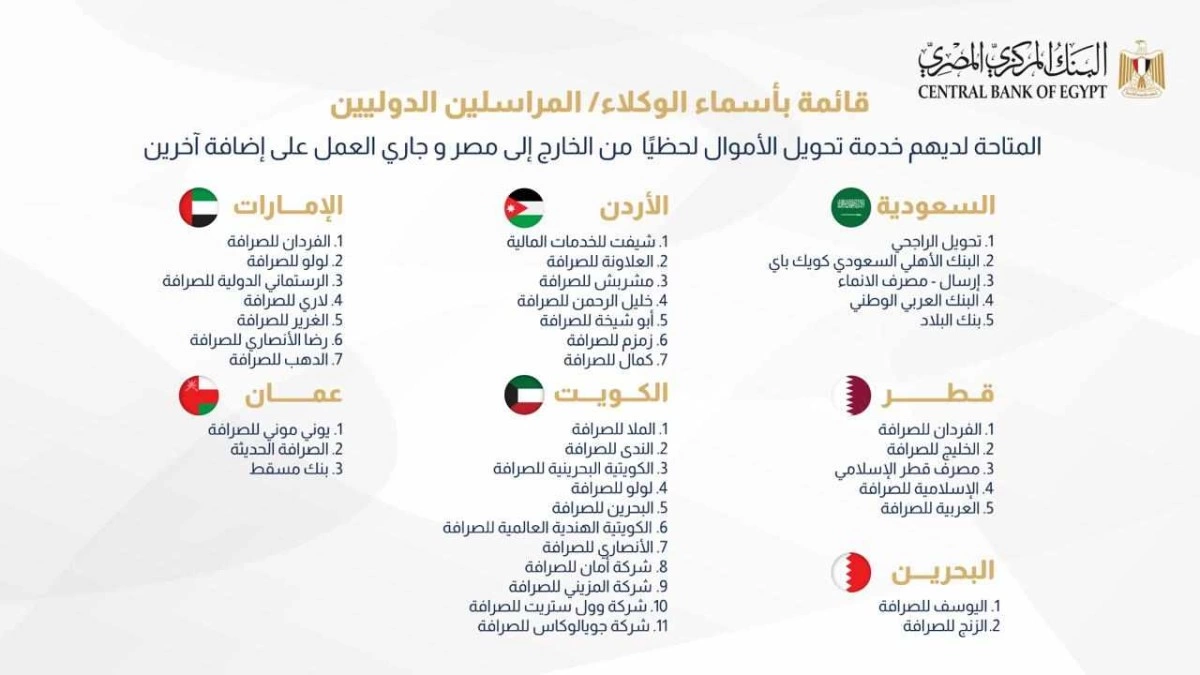 كما يحتوي الفيديو على قائمة بأسماء الوكلاء/ المراسلين الدوليين المتاحة لديهم الخدمة مع العلم أنه جاري العمل على إضافة آخرين.