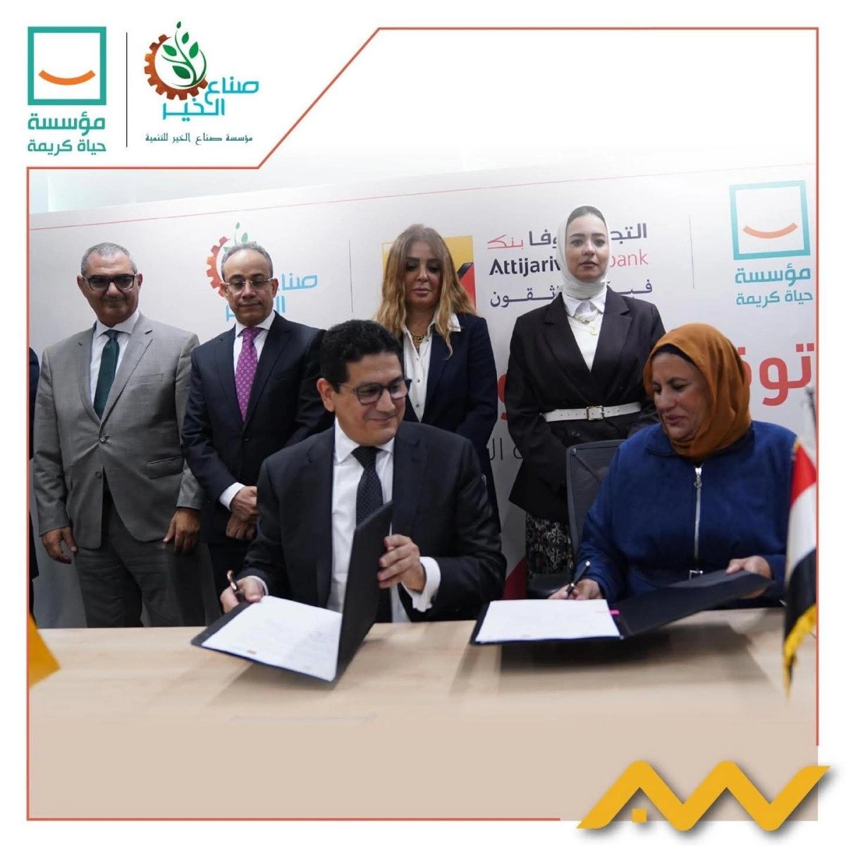 وقع الاتفاقية من جانب البنك معاوية الصقلي، وذلك مع كلًا من الدكتورة مروة فخري، المدير التنفيذي لمؤسسة حياة كريمة، وهاني عبد الفتاح، المدير التنفيذي لمؤسسة صناع الخير للتنمية