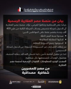 - «منصة مصر العقارية» التخصيص مقتصر على مستوفي الشروط فقط… وإيقاف حسابات غير المستوفين