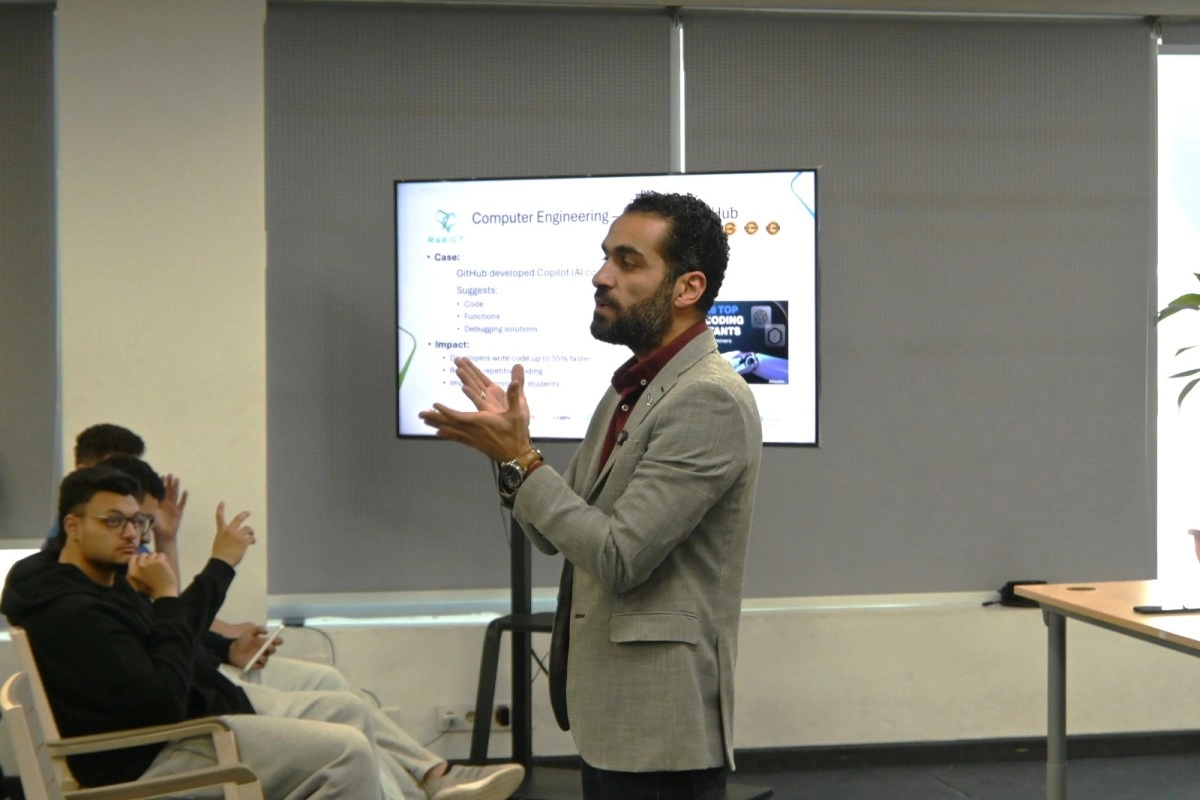 شهدت الأكاديمية العربية للعلوم والتكنولوجيا والنقل البحري فعالية متخصصة نظمتها شركة RAKICT، استهدفت طلاب كلية الهندسة، وبشكل خاص طلاب هندسة الكمبيوتر، وذلك في إطار دعم تأهيل الكوادر الشابة لسوق العمل في مجالات التكنولوجيا المتقدمة، وعلى رأسها الذكاء الاصطناعي.