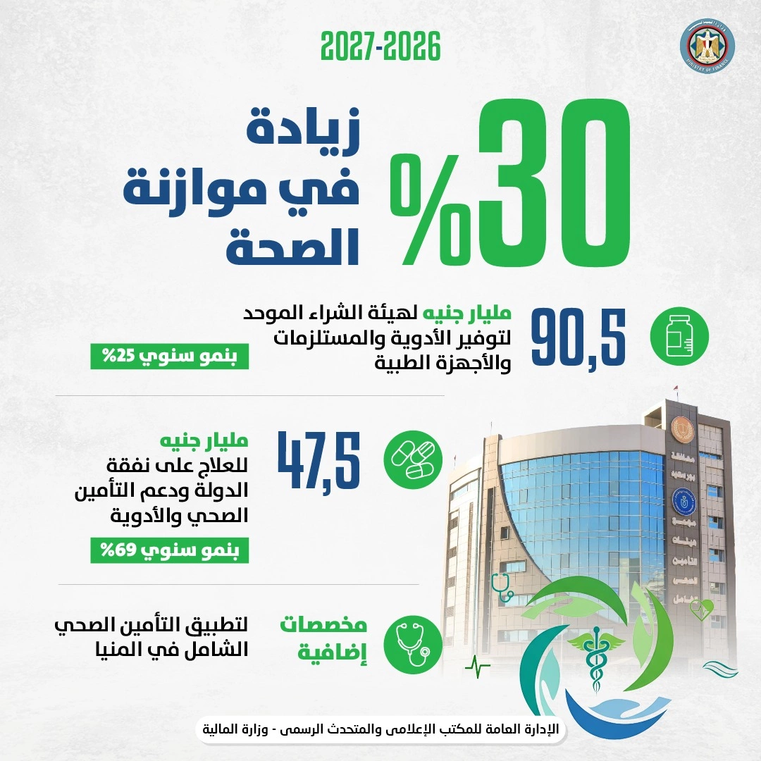 أضاف الوزير، فى مؤتمر صحفي، أننا نعمل ونتعاون مع وزارتى الصحة والتعليم على برامج متطورة أكثر تأثيرًا فى مسار تحسين الخدمات المقدمة للمواطنين، لافتًا إلى تخصيص ٩٠,٥ مليار جنيه لهيئة الشراء الموحد بنمو سنوي ٢٥٪ لتوفير الأدوية والمستلزمات والأجهزة الطبية لقطاع الصحة، بما فى ذلك ٤٧,٥ مليار جنيه للعلاج على نفقة الدولة ودعم التأمين الصحى والأدوية بنمو سنوى ٦٩٪؜ فضلاً على توفير مخصصات إضافية لتطبيق نظام التأمين الصحي الشامل في محافظة المنيا.